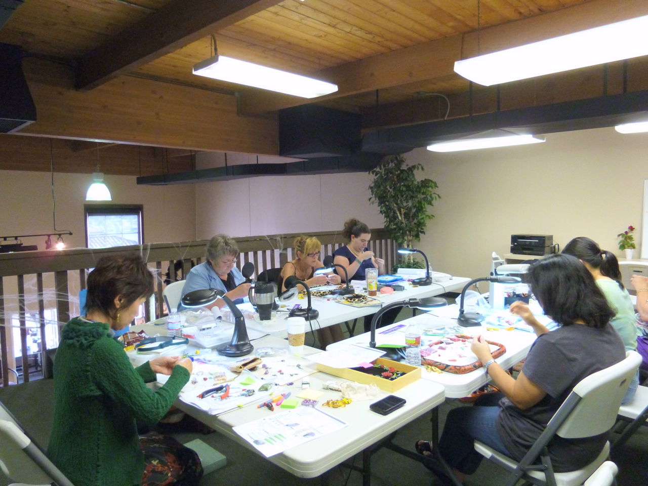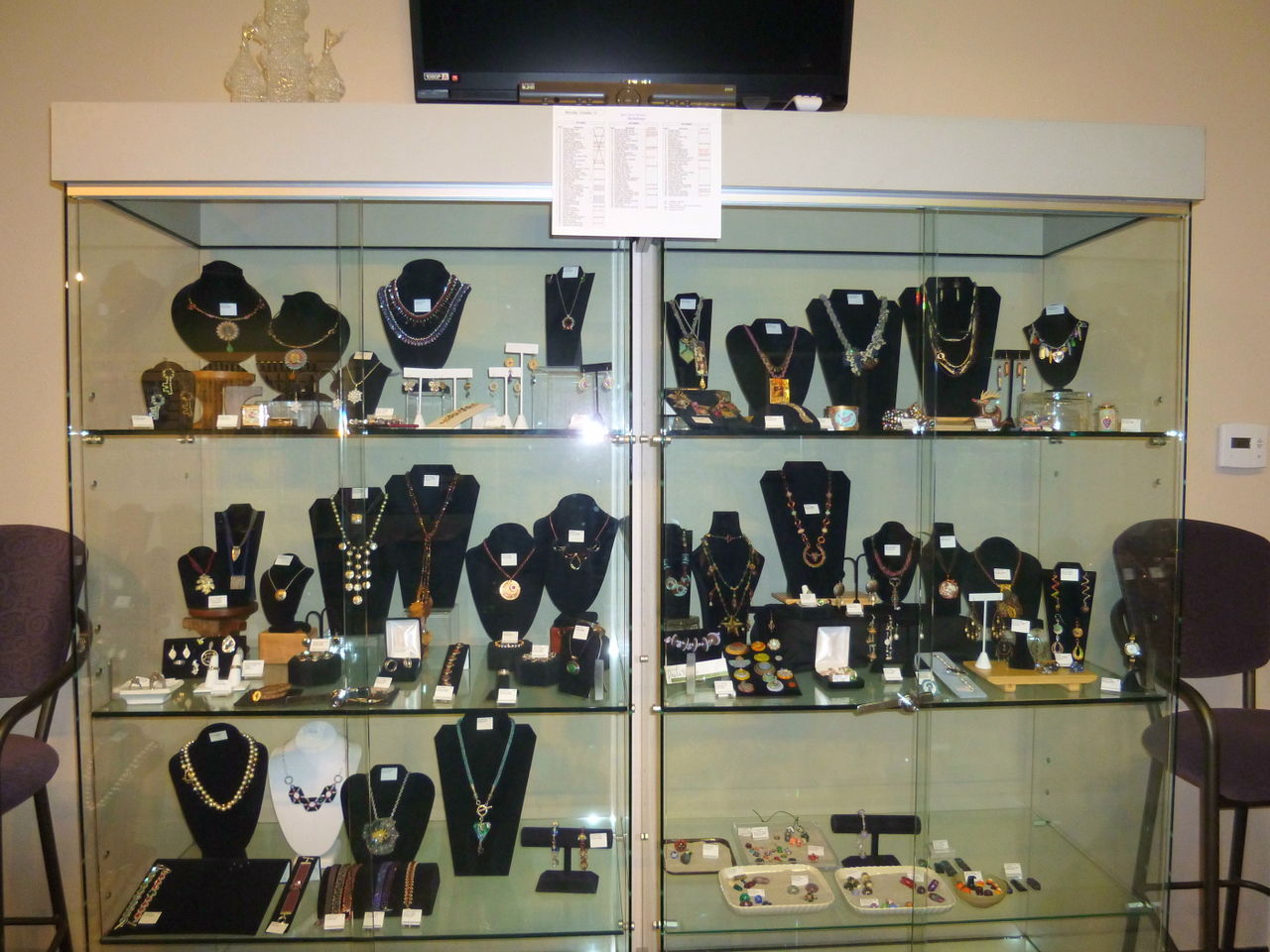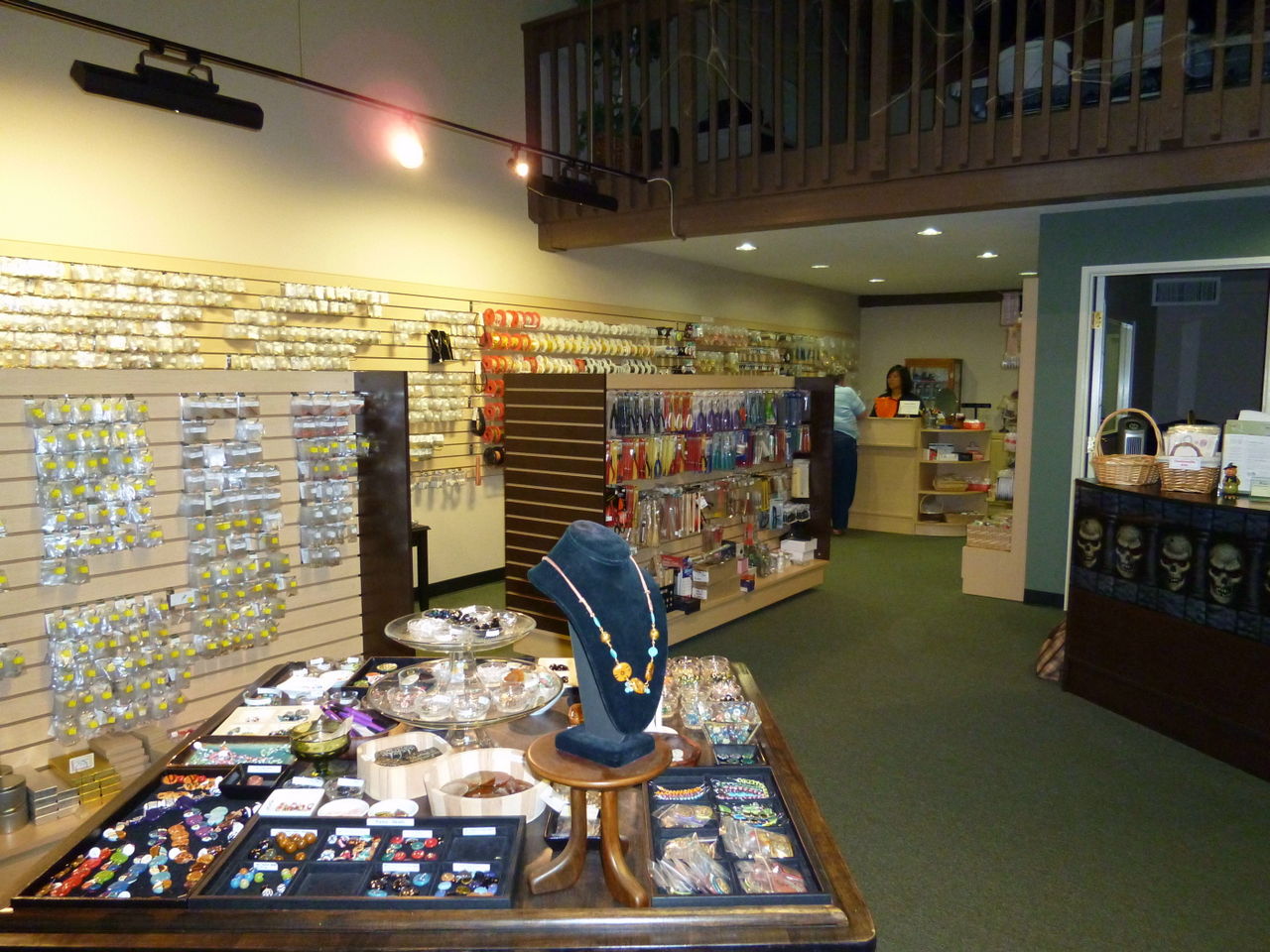 画像は1階のビーズ棚です。2階のアトリエに収まりきらず、