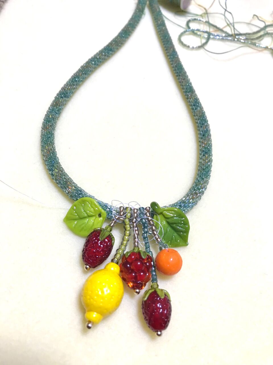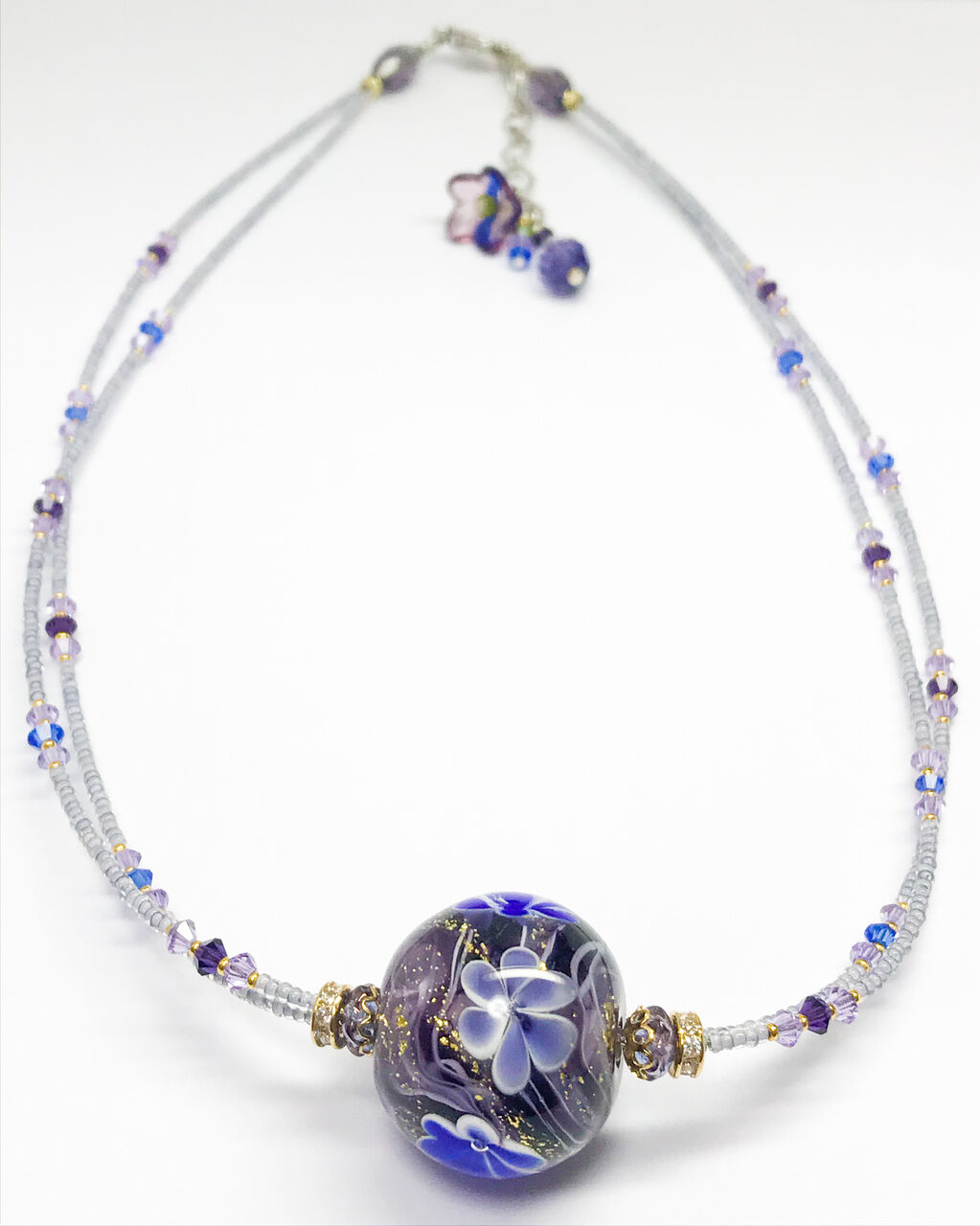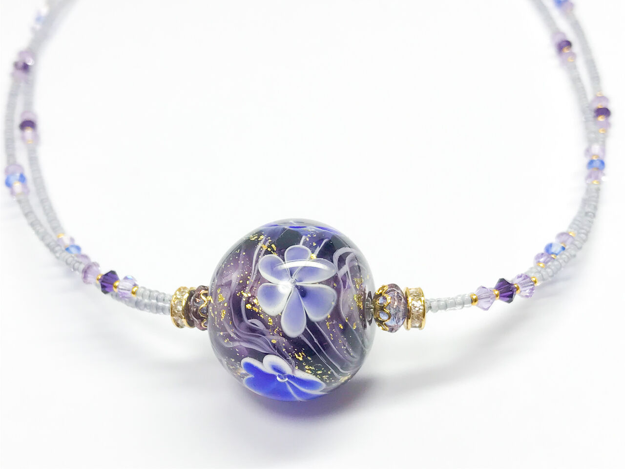 それと昨日始末が終わった、紫のとんぼ玉ネックレス。
