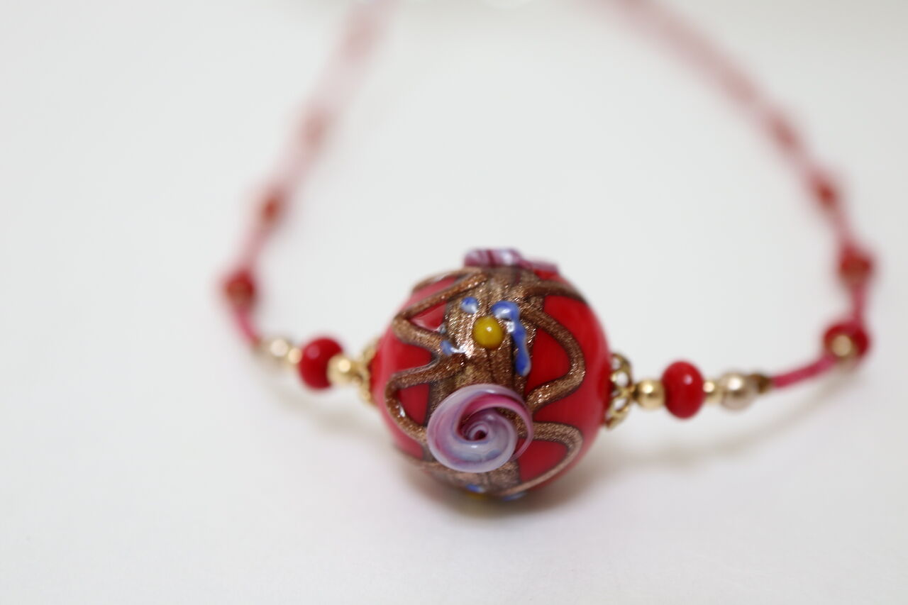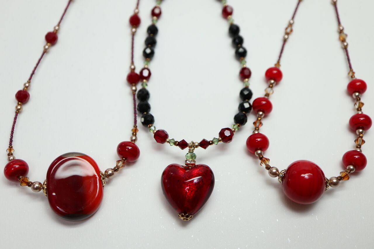 さて、定番赤のベネチアンネックレスなどを先に作り、