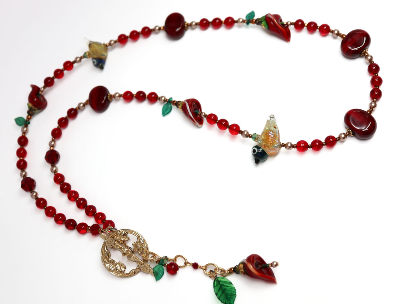 まだまだ定番赤あり。他にベネチアンビーズの蕾の形とアメリカの作家の鳥のとんぼ玉
